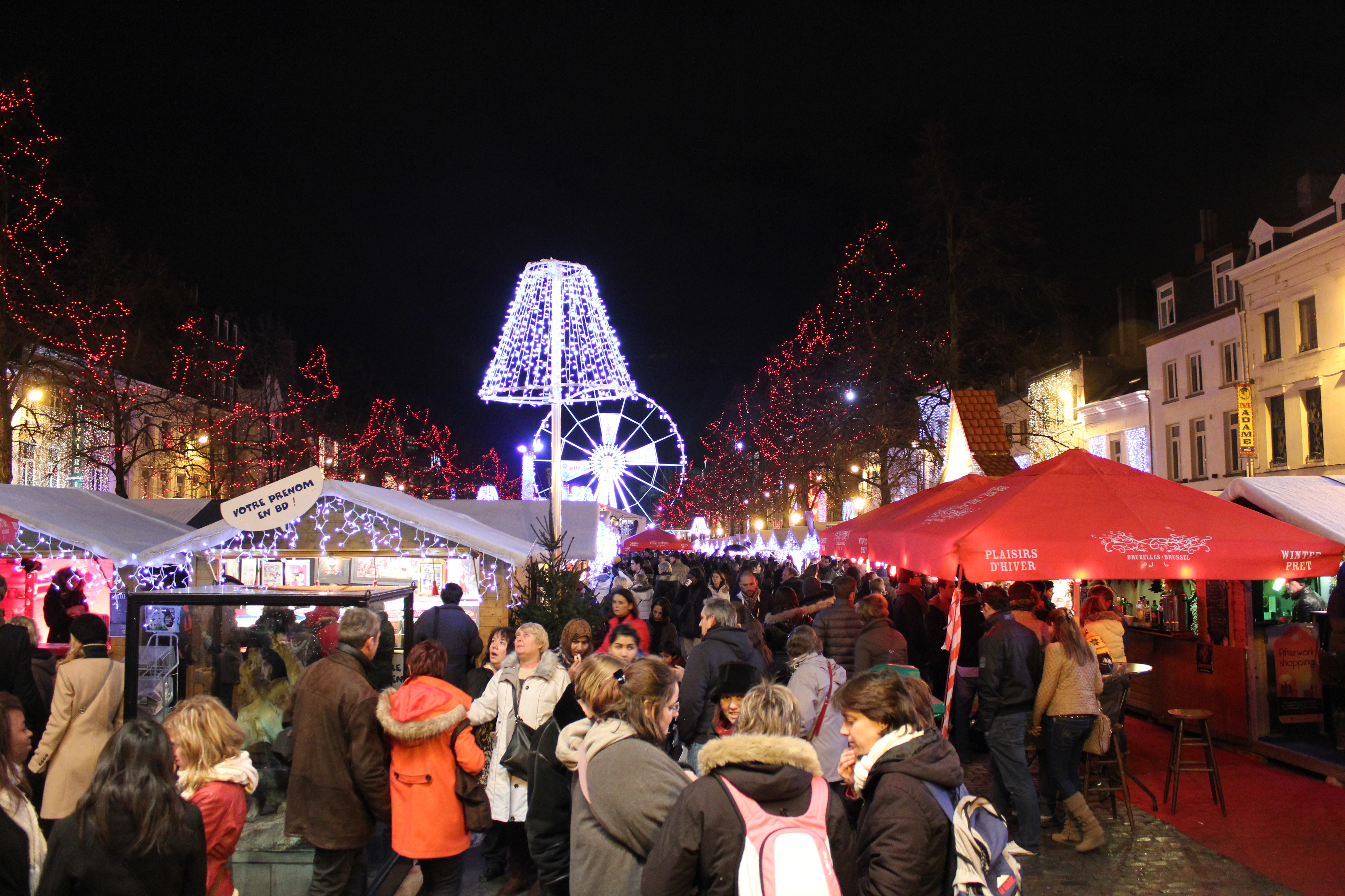 Here comes Santa Claus, here comes Santa Claus…actually I think that might be Justin wheeling his bag of newly purchased Belgian beers – looking every bit like all his christmas’ have come at once. Brussels promised to get us into the Chrissy spirit – and it delivered all things sparkly and tinsel related that we could hope for. I’d heard a lot about the Christmas markets in Europe and being a Chrissy fiend from way back, my expectations were very high.