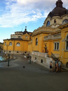 Following a few hours of pavement pounding courtesy of the Free Walking tour – throughout the cobblestone streets of Pest from Vorosmarty square to St Stephen Basilika, up the Danube and then across to Matthias Church on the Buda side of the river for a cracking view – we decided to rest our weary feet at the Szecheny Baths. Budapest is famous for its geothermal springs of which there are around 80 in the city – hence the title of Spa city. The Baths were hot and packed to the rafters with tourists – not a great combination when you’ve done a few years of Podiatric studies and are acutely aware of some of the hideous foot conditions you can pick up in these kinds of conditions. Putting my fear of fungal infections and sweaty armpits to the side we embraced the baths and plunged into the hottest one, sitting at around 38 degrees. 1.5hrs later 4 elderly people emerged, dehydrated, pruned up and over-heating and plunged straight into a cooler bath for relief. Probably should’ve paid attention to the warning of 20mins maximum…Nevertheless, turns out there was a whirl pool in the second pool which ensured we got back in touch with our inner screaming child. Awesome!