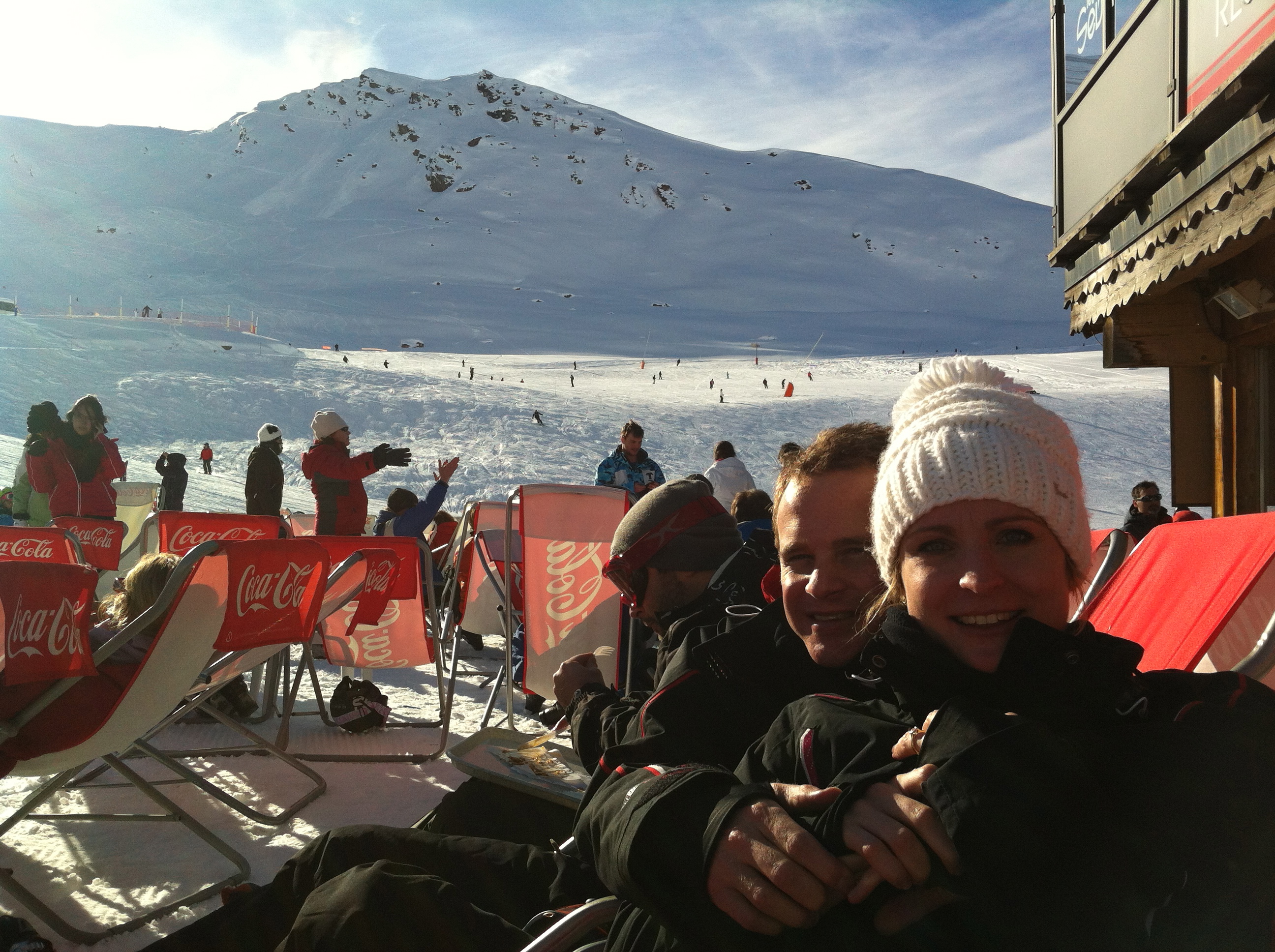IMG_1484The snow conditions delivered a mixed bag over the 4 days. Freshly groomed and speedy, icy and scary, mushy and tough to turn in, sparse and dangerous, powdery and challenging pistes – we had it all. Fortunately it snowed one day giving us plenty to play in at the Courcheval 1850 level and above. Anything below was a tad unfriendly. Day 3 we hauled ourselves across to Val Thorens and reached pretty much the highest point in the 3 valleys at 3100m. After flying down what we considered the speed track several times, we kicked back mountainside with our panini’s and coffees in the sun feeling pretty happy with ourselves. Tres bien! The old legs were completely and utterly gone by the end of the 4th day – in the absence of a warning sign to hang around my neck, we kept the action to only a few hours.