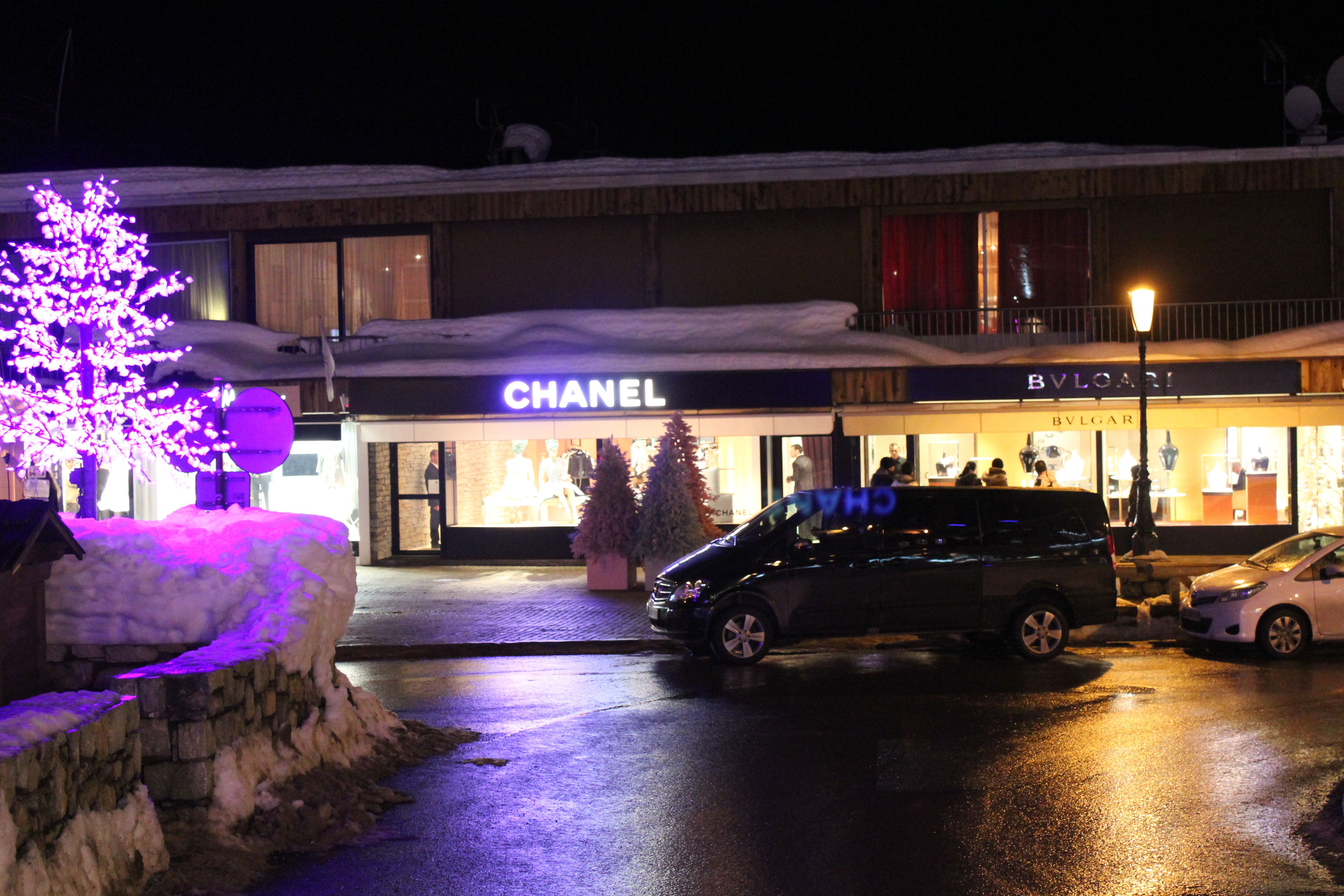 IMG_6020IMG_6032Courcheval is the most eastern ski resort of the 3 valleys in the French Alps. The ski area is said to be the largest in the world with over 600km of connected ski slopes providing an endless amount of ground to play in. It is often hailed as the “best ski resort in Europe, if you can afford it”. Perhaps that explains why the lifts were basically queue free…?! Apparently Courcheval 1850 ranks as the 6th most expensive place in the world (information that would’ve been handy prior to booking!!) and it’s become such a prestigious resort, the French introduced a 6 star rating system for hotels they call ‘palaces’. (what?!) There are 7 restaurants with Michelin star status and numerous designer shops including Louis Vuitton, Prada and Chanel. No riff raff here. The resort is simply beautiful – with gingerbread style houses covered in snow, fairy lights galore, christmas trees twinkling in the forest and warm wooden chalet style buildings lining the roads. If the wind is blowing in the right direction you can smell the money…not ours of course. I’ve never seen so much animal fur, white polyester and toy pooches in one place – needless to say, people watching was at an absolute premium!