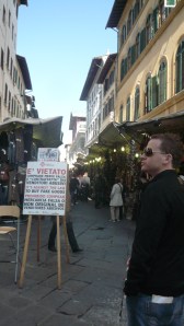 In between stumbling over the language, we spent a lot of time in the shops near Ponte Vecchio and around the city. We were determined to come home with some genuine Florentine clothing and accessories and dedicated ourselves to this task with vengeance. We quickly established how Florence earned the title of ‘best shopping in Europe’ – if we hadn’t been hamstrung by the Ryan Air luggage allowance our spending may have rivalled that of a small African nation. Nevertheless, a good bout of retail therapy worked wonders.