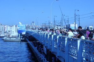Coming up for air on the northern side of the Spice market you instantly plunge headfirst into the mayhem of the Fish markets in order to reach Galata Bridge and the other side of the city. If the stench of fish doesn’t make you gag, the smell of sweat from the armpit wedged up against you probably will. It’s the kind of suffocating environment where you can’t see your feet and you find yourself getting claustrophobic within a few seconds. I’ll never complain about tube travel in London again. Nevertheless, we still found ourselves smiling as we emerged from underground to see hundreds of fishermen lined up on Galata Bridge, the backdrop of the sprawling city looking every bit picture perfect.