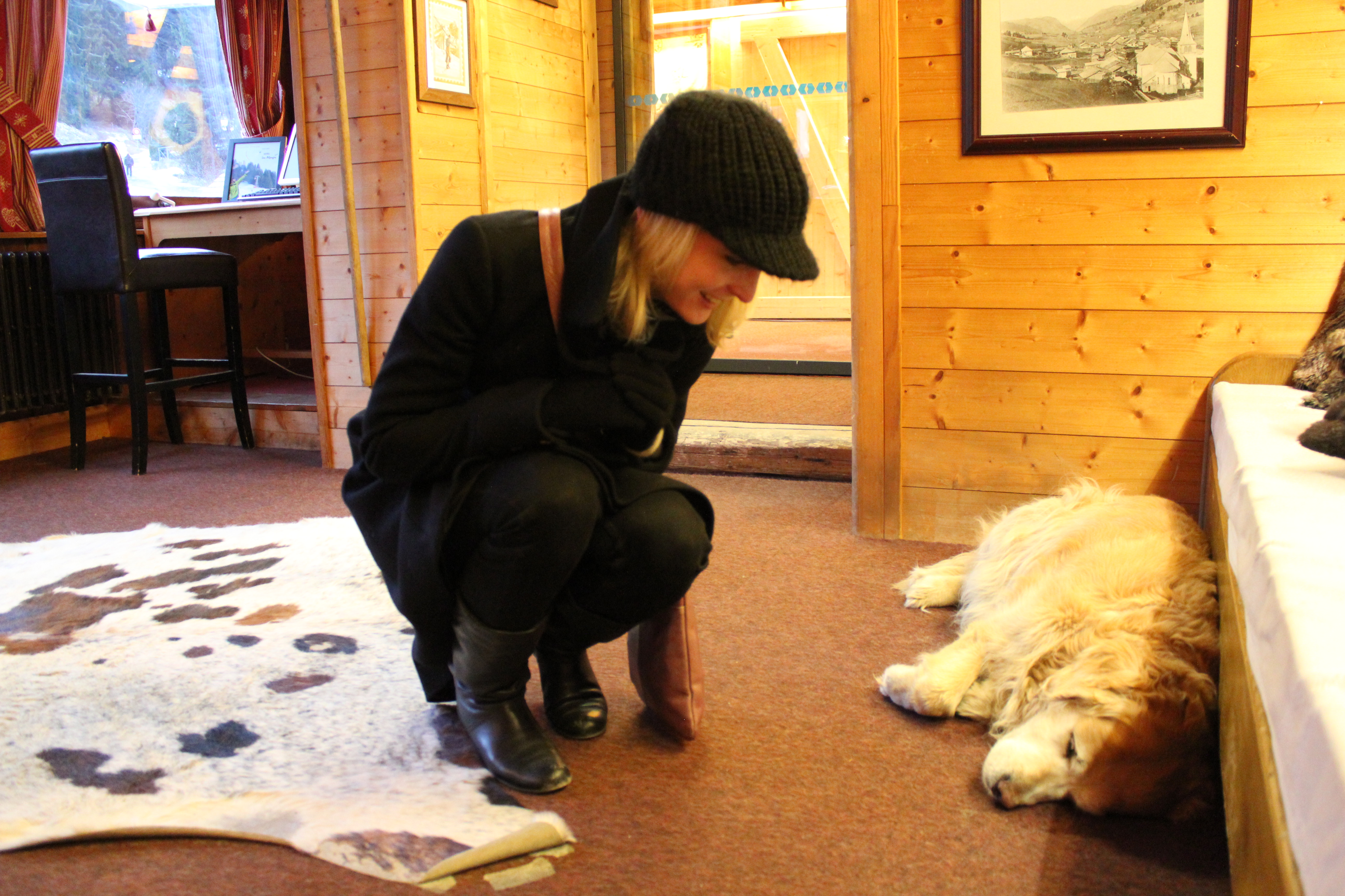 A quick flight to Geneva and then a shuttle transfer waiting for us in the car park made for a smooth transition. We were escorted by a self proclaimed communist driving Brit who regaled us with his views on the Government and how the end of the world was coming soon if the NHS was abolished. Can’t understand how he ended up doing daily 3 x 2hr return trips to Geneva for a living with such subtle opinions…? Within 1 hour of arriving in Switzerland we were checking into our hotel in the French Alps – Les Alpages. Much to my delight we were greeted by a snoring Golden Retriever in reception. After several minutes of cooing and saying ‘hello fella etc etc’ it suddenly occurred to me that even though the locals were bi-lingual, it was probably a stretch to expect a pooch to understand English. ‘Bonjour’ got a yawn and sniff of the hand which was good enough for me.