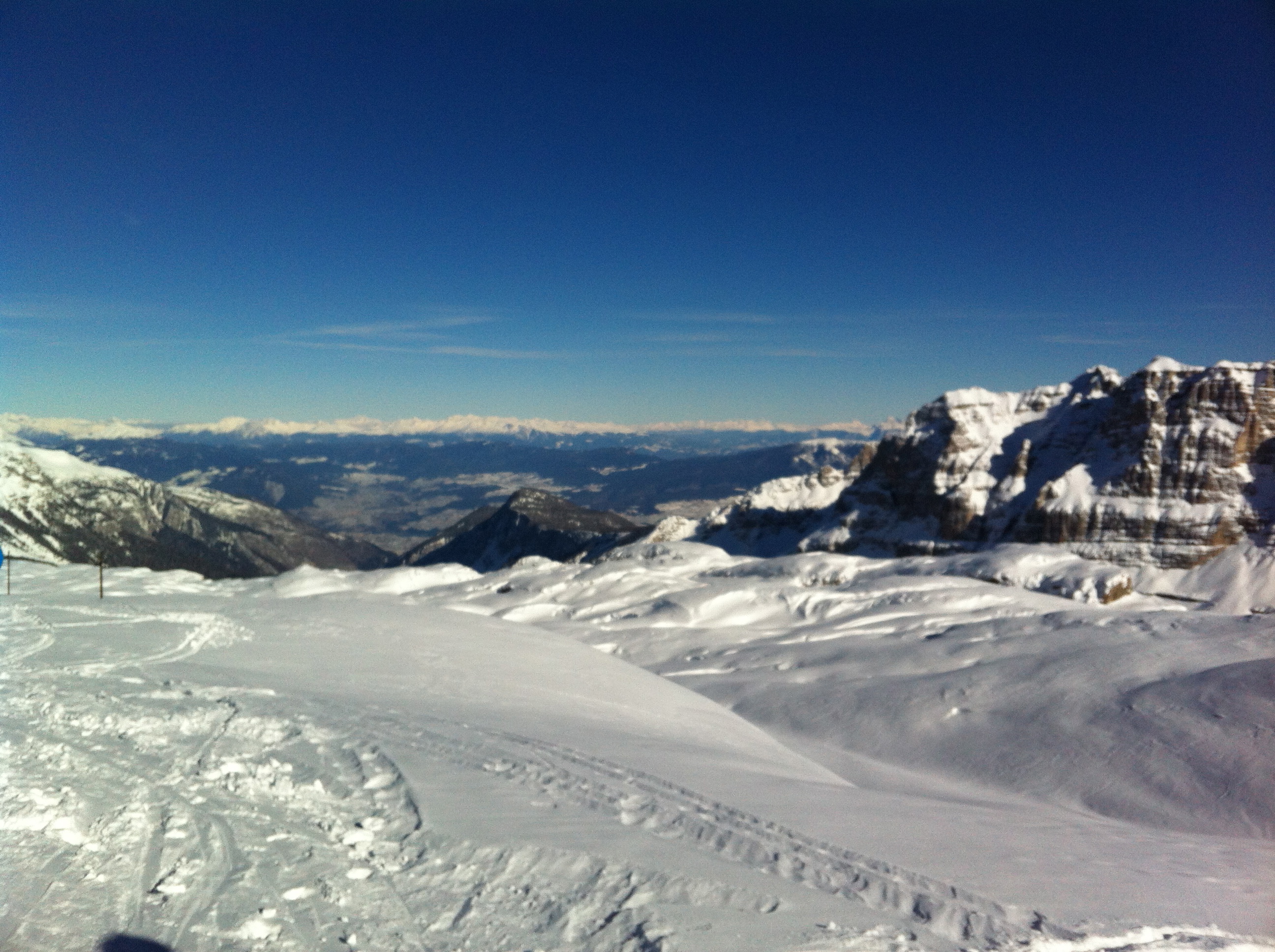IMG_6260Two hours north of Verona lies Italy’s most famous resort – Madonna di Campiglio. Often cited as the jewel of the Dolomites, Madonna di Campiglio is a charming town sitting at 1500m altitude. With around 150km of ski runs and 57 lifts in the area not to mention an impeccable ski bus set up, the resort provides an ideal playground for the budding intermediate skier – aka us.