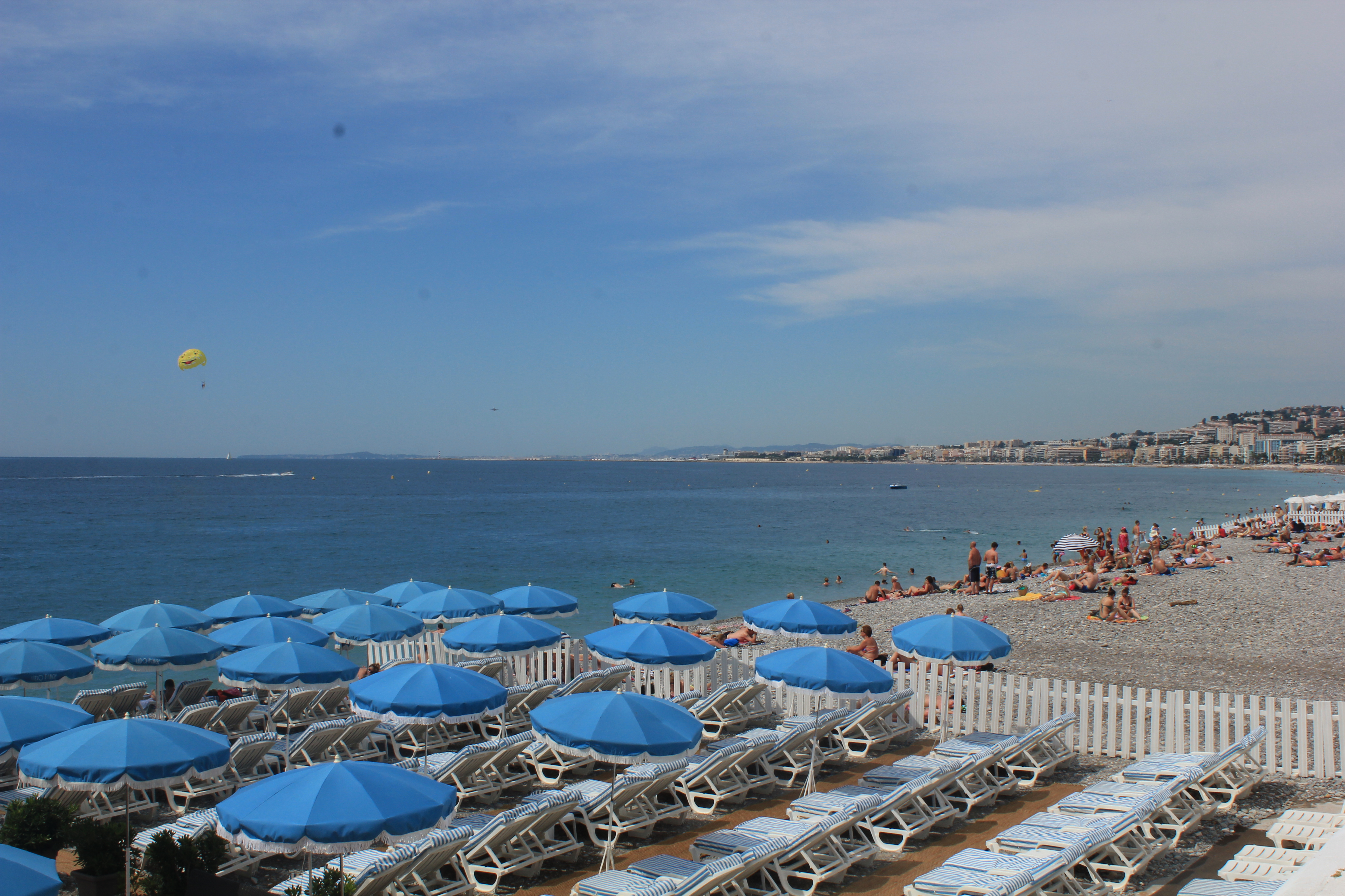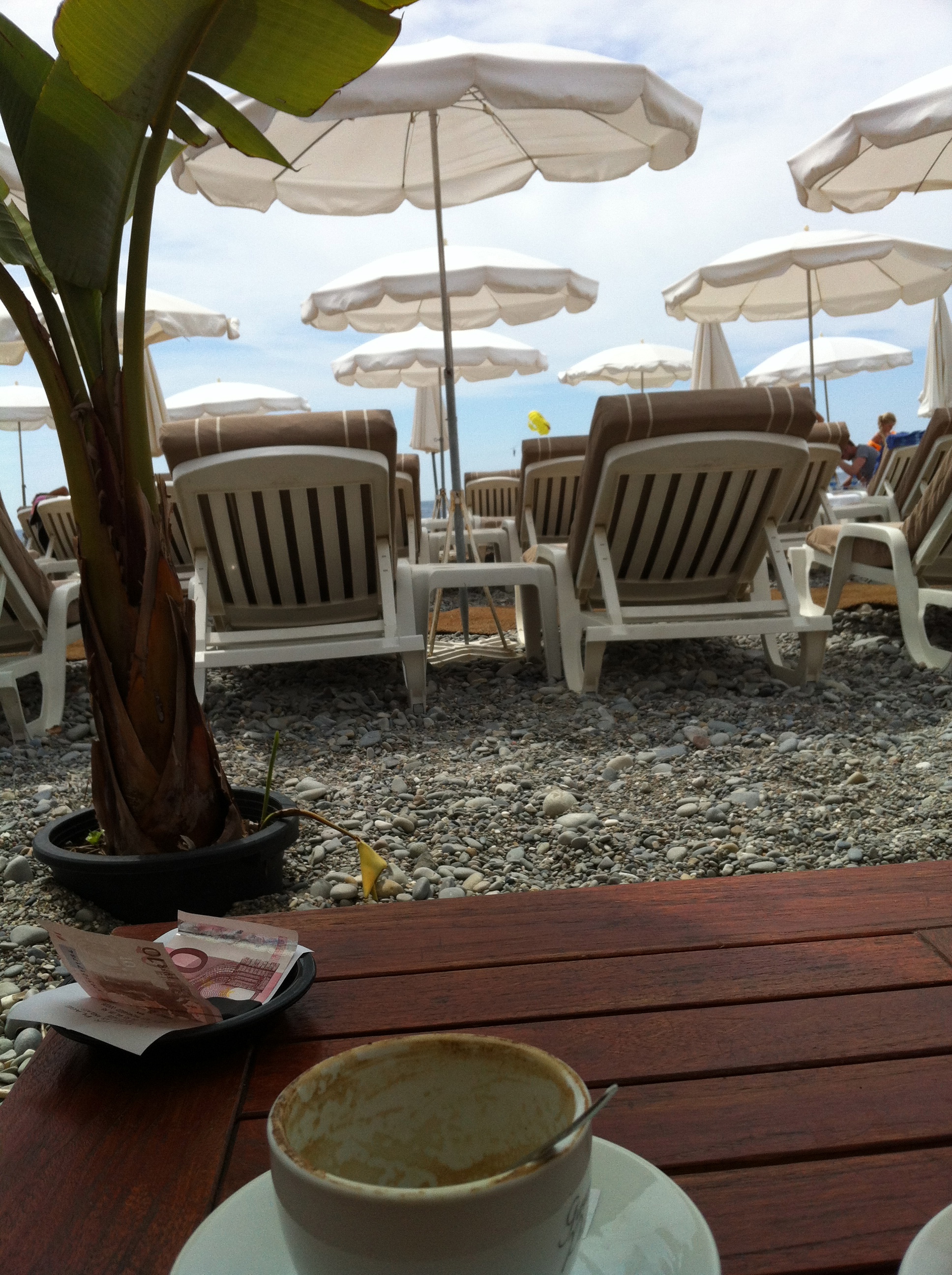 IMG_1514IMG_7041Although the Promenade offers an over-priced and slightly ridiculous 5 star private beach experience we couldn’t resist getting involved. Afterall, when in Rome! Paying more money than is sensible for a sun bed, towel and umbrella on Lido Plage we set up camp for the day. With a waiter on hand to take food and drink orders and hotel style bathrooms for exclusive use it was pretty easy to see how people could justify that kind of money on a daily basis. We looked across the fence at the great unwashed plebs who were roughing it on the pebbles in the searing heat and concluded that it was worth every penny. We also decided that yes, that would most likely be us next time…