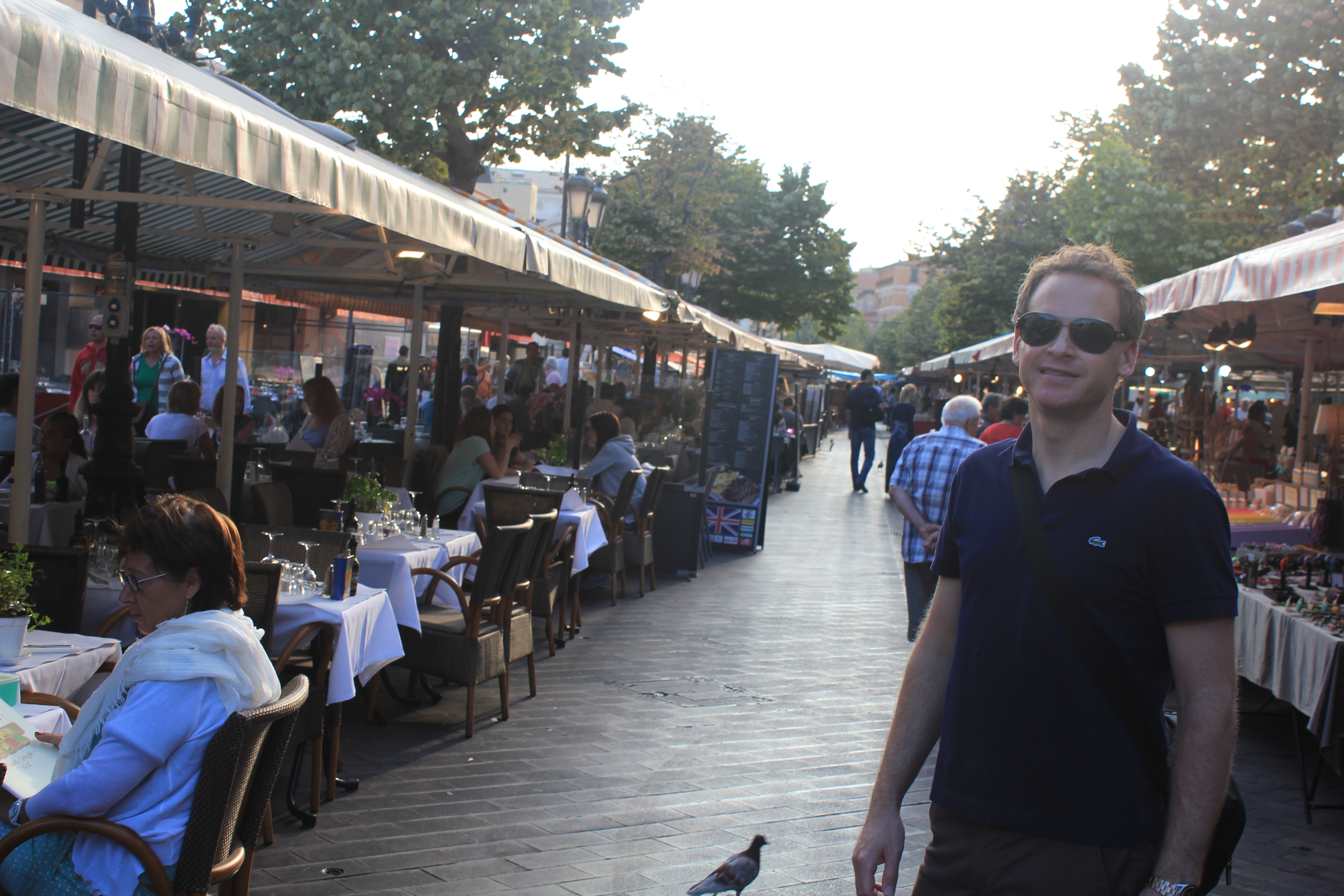IMG_1801Going hand in hand with people who are ‘happy’, it’s probably no great surprise that the locals were actually really friendly too. It was such a pleasure to be thrown the odd ‘bonjour’ completely unprompted on the streets, and to be forgiven time and time again for our poor grasp on the language. A standout example of just how friendly the locals were was at Cafe Le Sejour. Coming highly recommended on trip advisor, the family run restaurant gave us one of the best eating experiences we’ve had in a long time. Bending over backwards to ensure we understood all the translations and were comfortable and enjoying ourselves, it almost felt appropriate to give them a hug when leaving. Outstanding food and service with table seating outside on a balmy evening, a mere few minutes from our hotel – what a find! Being spoilt rotten with nearly 2,000 restaurants to choose from in Nice, fortunately we also chose well the following night with In Vino… surprising considering the benchmark from the previous night!